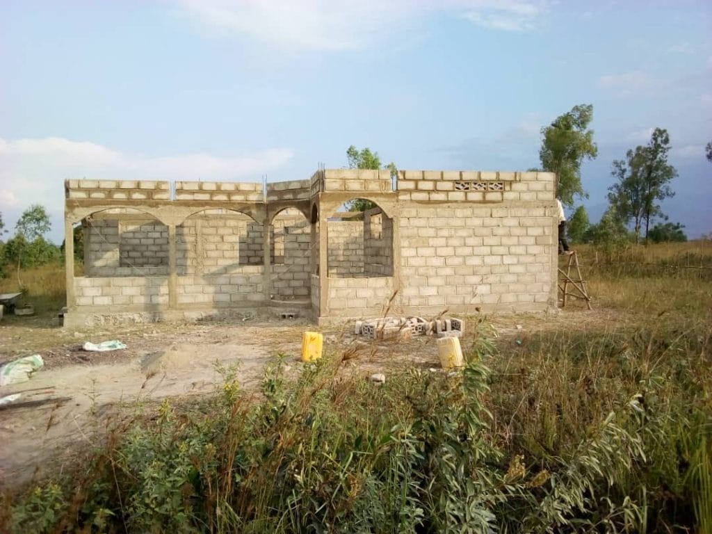 Nu har vi påbörjat byggnationen av vårt andra familjehem som ligger precis intill skolan i Sange. Grunden lades för några veckor sedan och nu är även väggarna på plats. Här kommer en kvinna från det lokala området att ta emot 16 föräldralösa barn som flyttar in i höst.